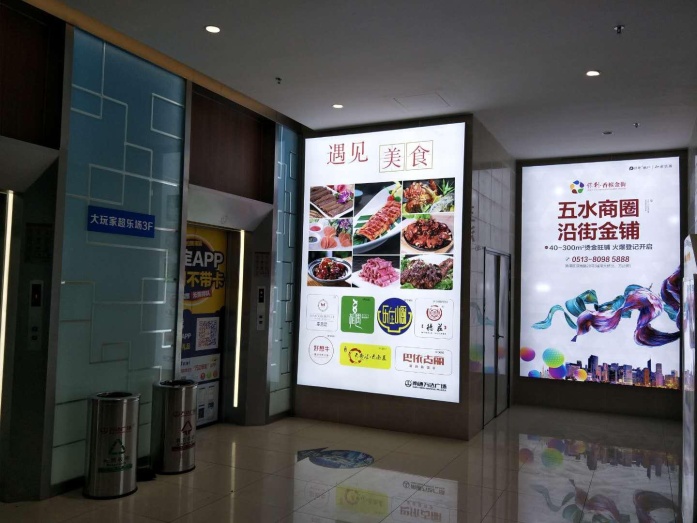 万达广场(港闸店)地下车库影城直达电梯旁灯箱【图片待完善】